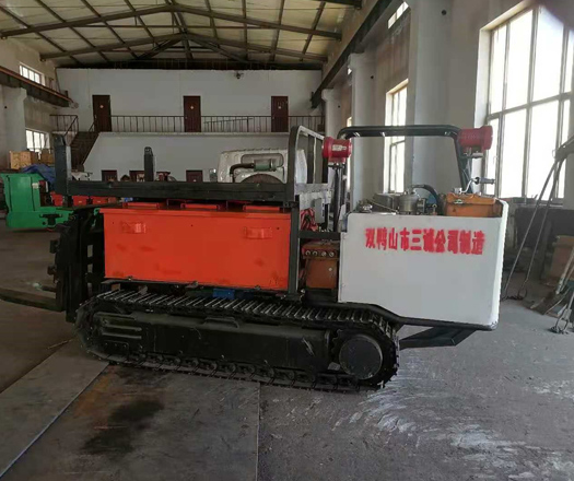 b、履帶行走,路面適應(yīng)性強(qiáng),不需要鋪設(shè)軌道,不需要路面硬化。行走履帶驅(qū)動(dòng)采用開式液壓傳動(dòng)系統(tǒng),具有傳動(dòng)平穩(wěn)、力矩大、的特點(diǎn)。